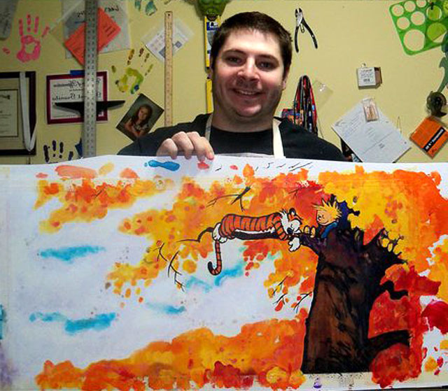 Na zdjeciu powyzej widzimy Granito, trzymajacego kolejna ze swoich prac. Tym razem jest dzielo przedstawia doskonale znane postacie Calvina i Hobbes'a, ktorych tworca jest Bill Watterson, jednak nie tylko postacie wygladaja znajomo. Okazuje sie, ze Rob, idac po najmniejszej linii oporu, ukradl oryginalna ilustracje Wattersona. Poniewaz znajduje sie ona na rewersie okladki tomiku pod tytulem "Revenge of the Baby-Sat", ktorego posiadaczem jestem od wielu lat, poznalem ja i ja.