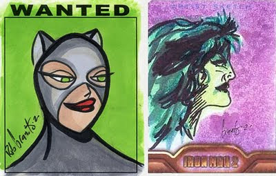 Praca po lewej przedstawia, jak widac, Catwoman, i jest nieudolna kopia stylu Bruce'a Timm'a. Rysunek ten sprzedawany byl na jednym z konwentow jako szkic wykonany na miejscu. Okazalo sie jednak, ze byl to czarno-bialy wydruk, ktory Granito pokryl tuszem, by nie musiec rysowac od zera na oczach publicznosci. Praca po prawej jest natomiast rysunkiem odrecznym, i tu talent Rob'a wychodzi w praniu. Dodam, ze na liste swych osiagniec, artysta wpisal prace przy filmie Iron Man 2.